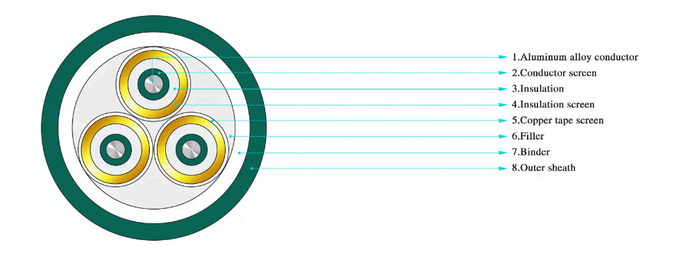 ·3.6/6kV~26/35kV 정격전압용 3심 XLPE 절연 강선 외장 전력케이블