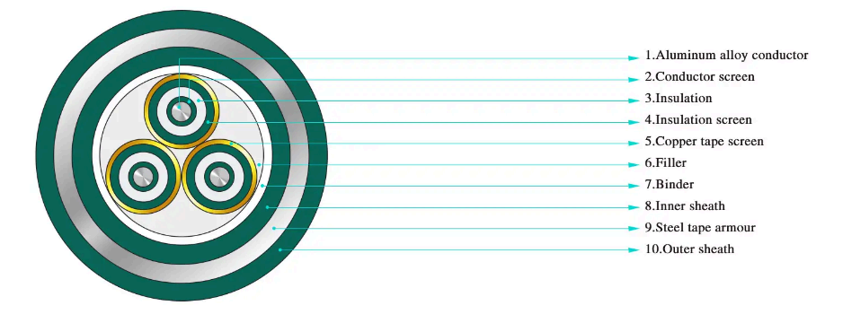 | YILV23 | 알루미늄 코어 XLPE 절연 강철 벨트 기갑 폴리에틸렌 피복 전원 케이블 | |