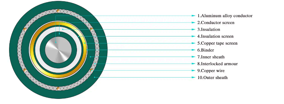 ·3.6/6kV~26/35kV 정격전압용 단일 코어 XLPE 절연 강선 외장 전원 케이블